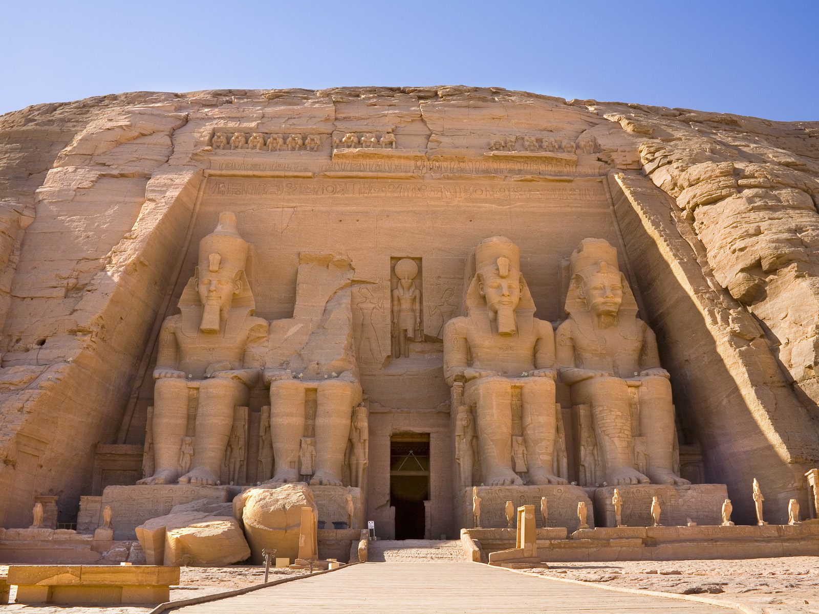 The complex consists of two temples. The larger one is dedicated to Ra-Harakhty, Ptah and Amun, Egypt’s three state deities of the time, and features four large statues of Ramesses II in the facade. The smaller temple is dedicated to the goddess Hathor, personified by Nefertari, Ramesses’s most beloved of his many wives The temple is now open to the public.